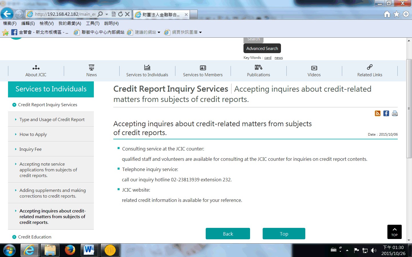 qualified staff and volunteers are available for consulting at the JCIC counter for inquiries on credit report contents.