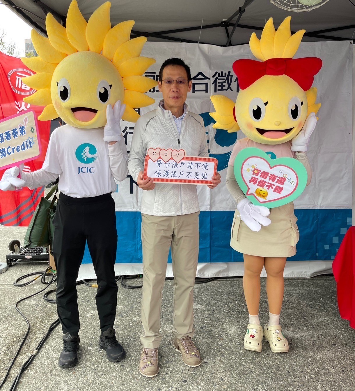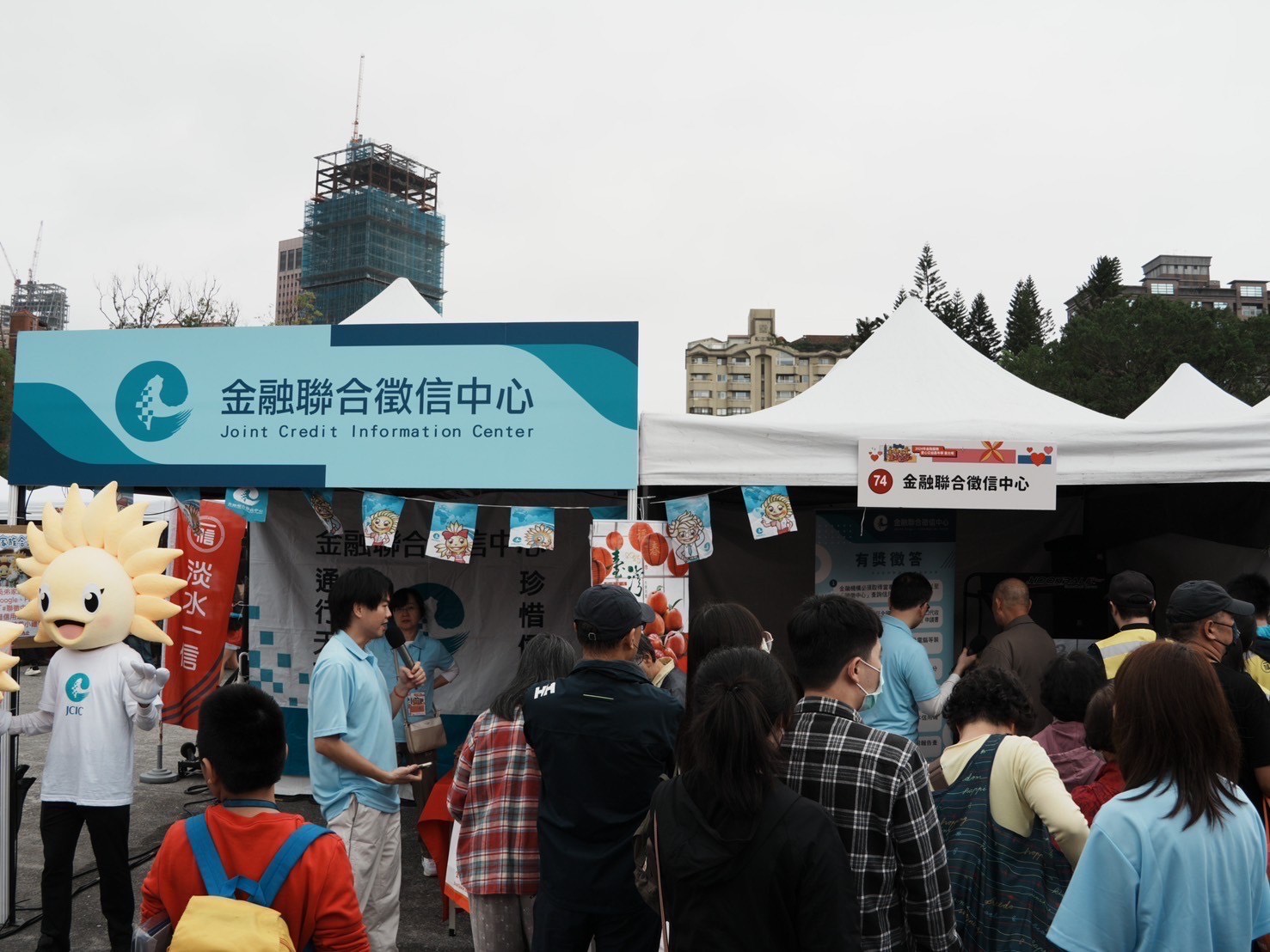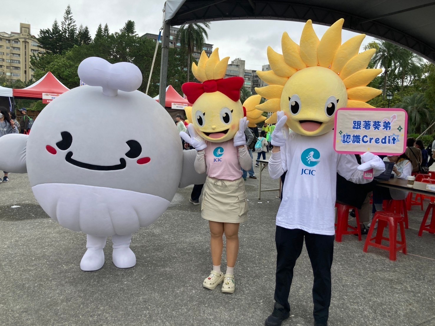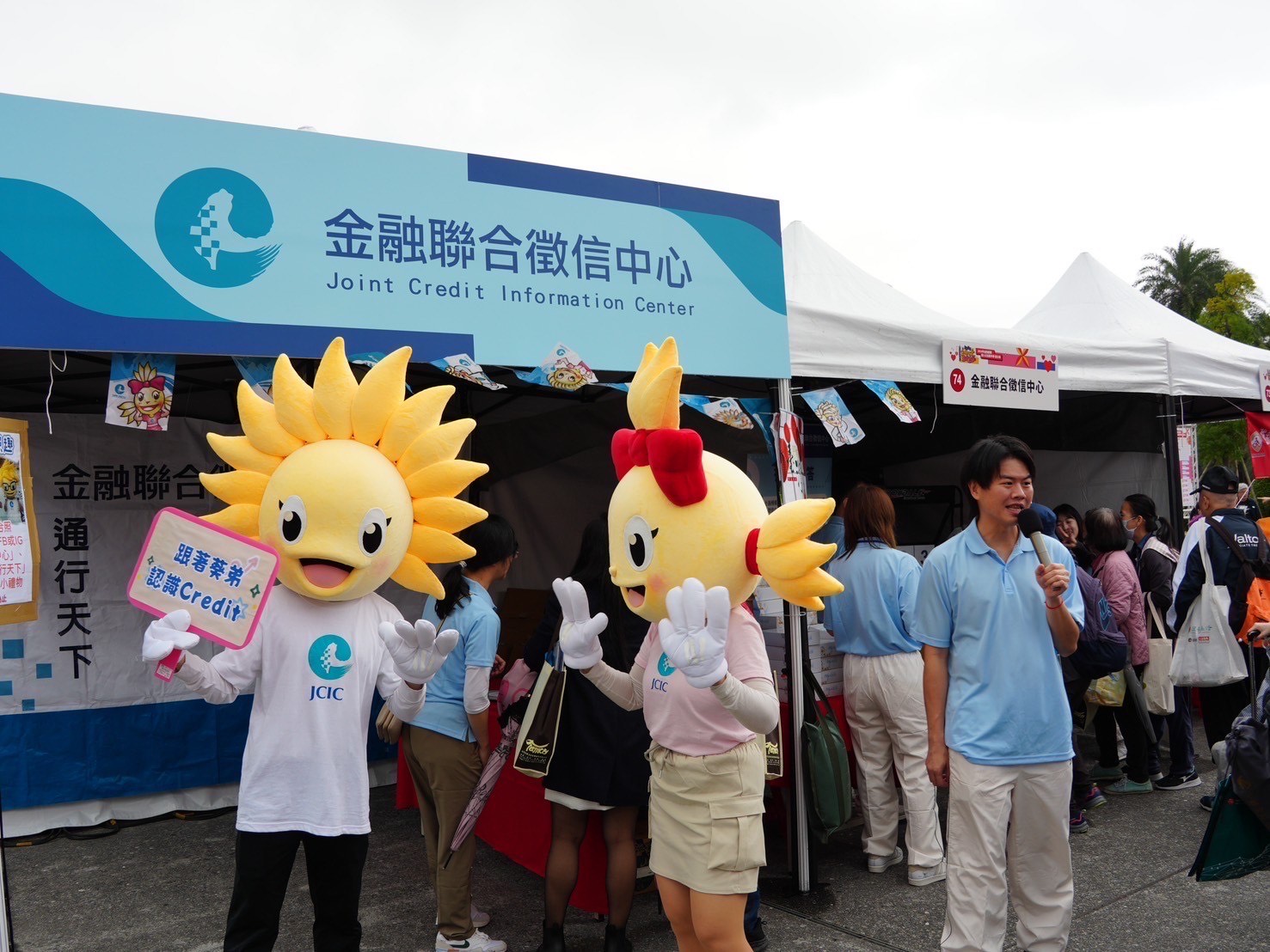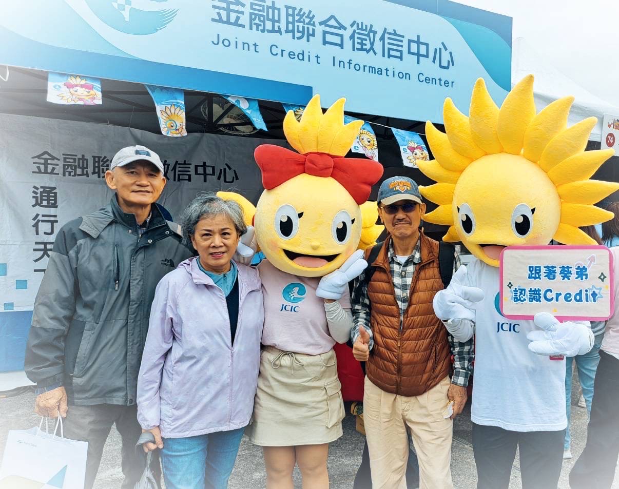 聯徵中心吉祥物人偶「葵弟(Credit)」及「葵妹」現身會場與民眾互動合影,現場反應熱烈,增添歡樂氣息。